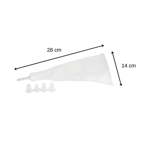 L'ensemble composé de poches à douille et de 5 douilles est idéal pour décorer et garnir gâteaux, tartes et cupcakes. Les buses en plastique (environ 3,5 cm) conviennent pour les petites fleurs, les étoiles, les lignes droites ou pour remplir des beignets ou des beignets avec de la confiture. Le sac (environ 28 x 14 cm) est fabriqué dans un matériau extra-résistant et peut être réutilisé pour la prochaine utilisation après le nettoyage.