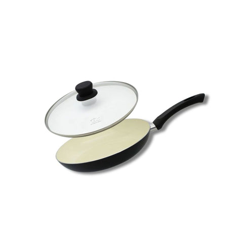 Ensemble poêle antiadhésive 24 cm et couvercle en verre, compatible tout feux y compris l'induction. Revêtement céramique sans PFAS pour une cuisson saine et facile. Le couvercle en verre améliore la cuisson, réduit les éclaboussures et permet un contrôle visuel de la cuisson.