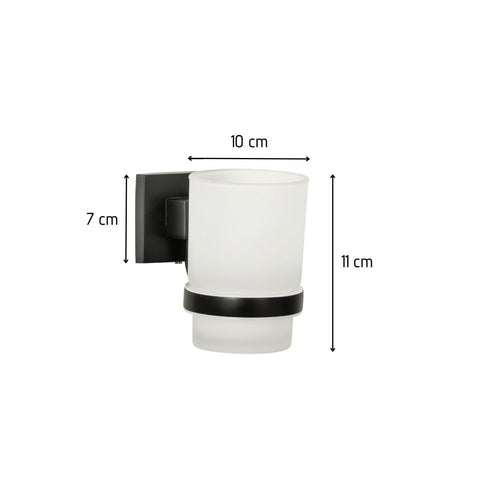 Bienvenue à New York ! Noir mat, design cubique et lignes claires caractérisent la série NEW YORK de Fackelmann. Avec le porte brosse à dents (7 x 10 x 11 cm) en verre satiné, vos brosses à dents trouveront leur place sans votre salle de bain. Le nettoyage est très facile car le pot à brosse à dents n'est pas fixé au support et se retire. Le support en métal noir mat met des accents modernes et rend votre salle de bain unique. Vous pouvez facilement fixer le support au mur avec le matériel de montage inclus.