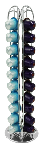 Cet accessoire de cuisine est un porte capsule de café rotatif pouvant contenir jusqu'à 40 dosettes de café grâce aux différentes colonnes de rangement. Ce distributeur de dosettes de café est adapté aux capsules Nespresso. Vous pouvez ainsi aménager votre coin café dans votre cuisine en disposant les capsules joliment dans ce porte capsule Nespresso. Grâce aux différentes colonnes de rangement du porte dosette Nespresso vous pouvez ranger plusieurs saveurs de café différentes et vous servir sans enlever toutes les dosettes.