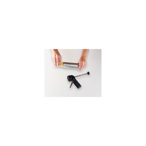 Mode d'emploi : Choisissez le disque de motif de votre choix et placez-le dans le presse biscuit. Versez votre préparation dans le pistolet et pressez doucement la poignée pour en faire sortir la pâte. Vous pouvez utiliser une plaque ou un tapis de pâtisserie pour y déposer votre préparation.