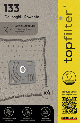 TopFilter, fabricant français de sacs d'aspirateurs, propose ce lot de 4 sacs aspirateur pour Rowenta afin de renouveler votre sac aspirateur comme il convient de le changer dès qu'il est plein, soit environ après 3-4 mois.