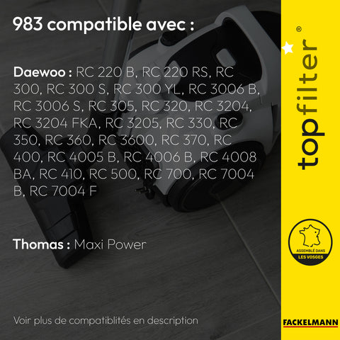 TopFilter, fabricant français de sacs d'aspirateurs, propose ce lot de 4 sacs aspirateur pour Daewoo qui retient la poussière et les acariens. Le sac aspirateur se change dès qu'il est plein, soit environ tous les 3-4 mois.