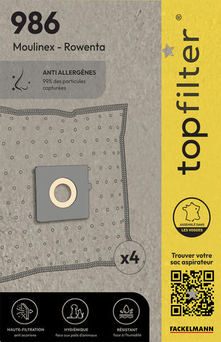 TopFilter, fabricant français de sacs d'aspirateurs, propose ce lot de 4 sacs aspirateur pour Rowenta et Moulinex. Le sac aspirateur doit être changé environ tous les 3-4 mois, quand il est plein.