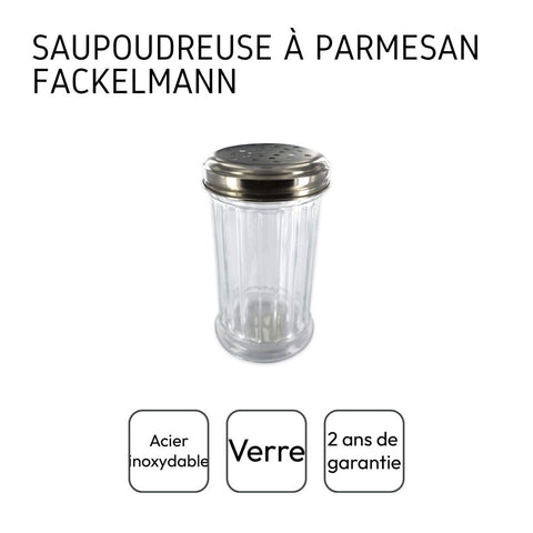 Fackelmann vous propose cette saupoudreuse en verre avec un tamis assez épais pour faire passer des poudres comme du parmesan râpé, de la poudre d'amande ou de noix de coco. Cette saupoudreuse est idéale pour recouvrir rapidement votre gaufre de sucre glace !