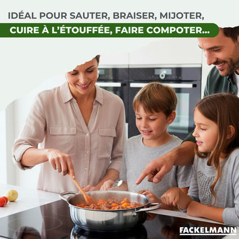 La série Vita3 de Fackelmann cm a été conçue pour ceux qui recherchent une cuisine plus naturelle, saine et efficace. Avec sa structure triply, le sautoir 28 cm Fackelmann Vita3 combine une couche intérieure et extérieure en acier inoxydable 18/10 avec un noyau en aluminium, ce qui garantit une répartition homogène de la chaleur sur toute la surface.