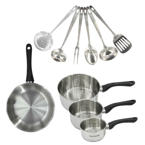 Set 1 poêle 24 cm, 3 casseroles en inox et 6 ustensiles inox Fackelmann Geneva