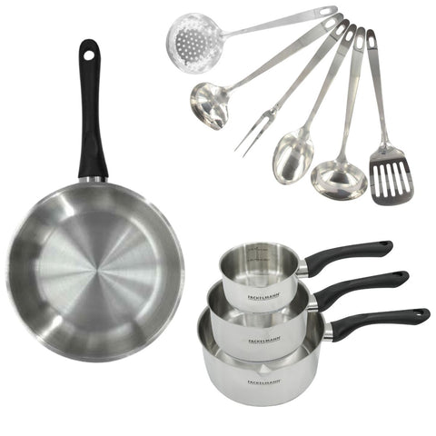 Set 1 poêle 28 cm, 3 casseroles en inox et 6 ustensiles inox Fackelmann Geneva