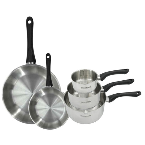 Découvrez cet ensemble Fackelmann Geneva, comprenant une poêle de 20 cm et une de 28 cm, ainsi que des casseroles de 12 cm, 16 cm et 20 cm. Fabriquées en acier inoxydable 18/8 sans PFAS pour une cuisine saine, elles offrent une qualité et une performance de cuisson optimale.