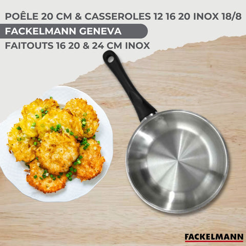 Découvrez notre ensemble de cuisine Fackelmann Geneva comprenant une poêle de 20 cm et trois casseroles en acier inoxydable 18/8 (12 cm, 16 cm, 20 cm) et trois faitouts inox (16 cm, 20 cm, 24 cm) pour des repas variés. Ce set de cuisine sans PFAS vous assure une cuisson saine et optimale, tout en étant facile à entretenir.