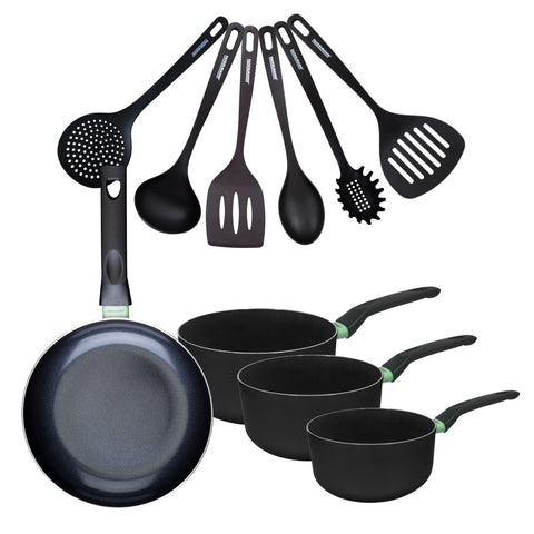 Cet ensemble de cuisine Fackelmann Brandao est un must-have pour les amateurs de cuisine pratique et saine. Ces ustensiles de cuisson en aluminium recyclé ont un revêtement céramique antiadhésif sans PFAS, garantissant une cuisson saine.