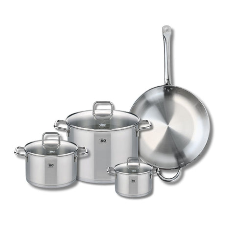 Ce set de la marque Allemande ELO, réputée pour sa qualité, comprend quatre produits essentiels qui vous permettront de préparer une variété de plats avec facilité. Tous ces ustensiles sont en inox, matériau reconnu pour son hygiène, sa robustesse et son esthétisme. Ils sont compatibles avec tous les types de feux, y compris l'induction, et passent même au four (sauf les couvercles).