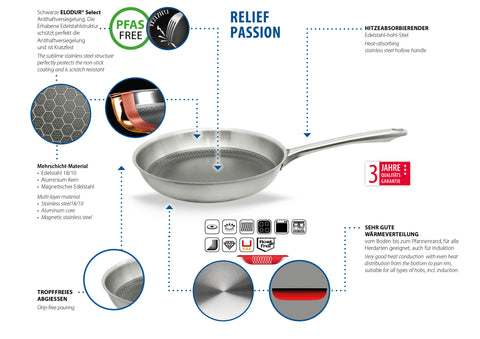 Set de 2 poêles 24 et 28 cm en acier inoxydable et revêtement sans PFAS Elo Relief Passion