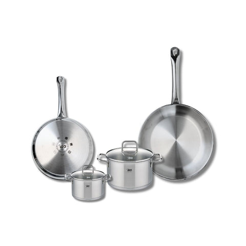 Découvrez le set de 2 poêles de cuisson et 2 faitouts Elo Profi Citrin, une combinaison parfaite pour tous vos besoins culinaires. Ce lot comprend deux poêles de 24 et 28 cm, idéales pour saisir, rôtir ou cuire vos aliments à la perfection. Conçues en inox de haute qualité, elles offrent une excellente conductivité thermique, permettant une répartition homogène de la chaleur. Leur finition élégante en inox donne non seulement un look moderne à votre cuisine, mais assure également une robustesse à toute épreuve.