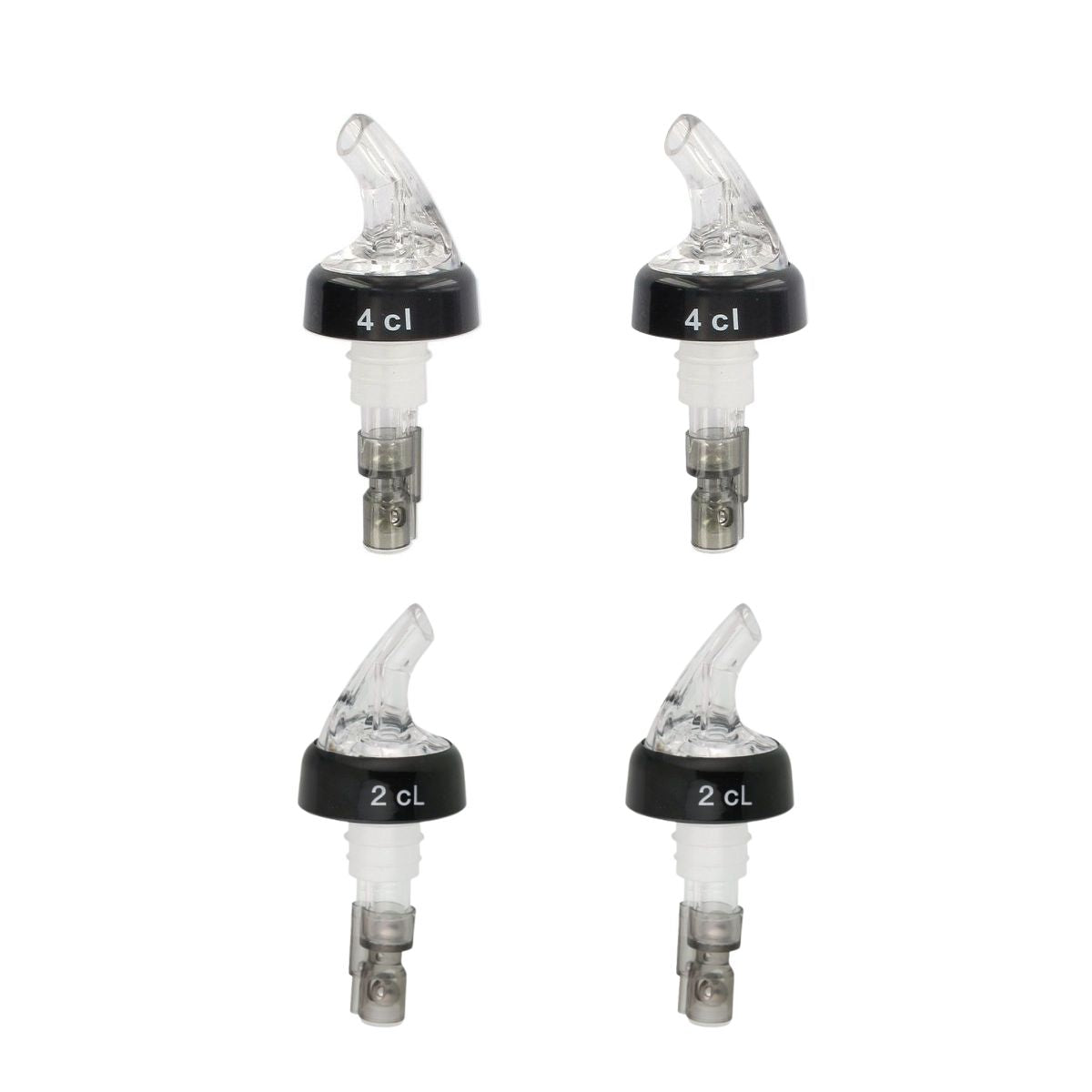 Fackelmann vous suggère ce lot de 4 becs verseurs doseur à bille, 2 doseurs à alcool de 2 cl et de 2 de 4 cl, qui vous permettront de doser précisément l’alcool pour vos cocktails comme tout barman, ou d’autres liquides en cuisine.