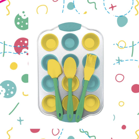 Parce qu'il n'y a pas que les grands qui aiment cuisiner, Fackelmann propose ce set 16 pcs pour la fabrication de mini cupcakes pour enfants au design coloré et fun.