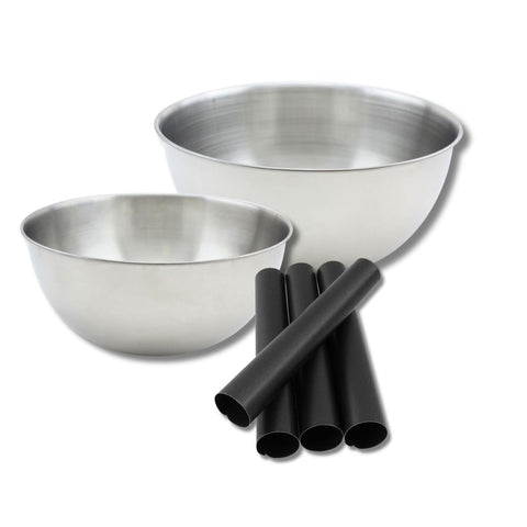 - 2 bols à mixer en inox robuste de 25 cm et 20,5 cm de diamètre, pour préparer vos pâtes à gâteaux