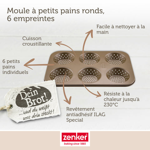 Découvrez notre ensemble de pâtisserie Zenker comprenant un moule à 6 petits pains, deux bols à mixer, une spatule en silicone Zenker et un verre doseur. Idéal pour toutes vos pains et brioches individuels.