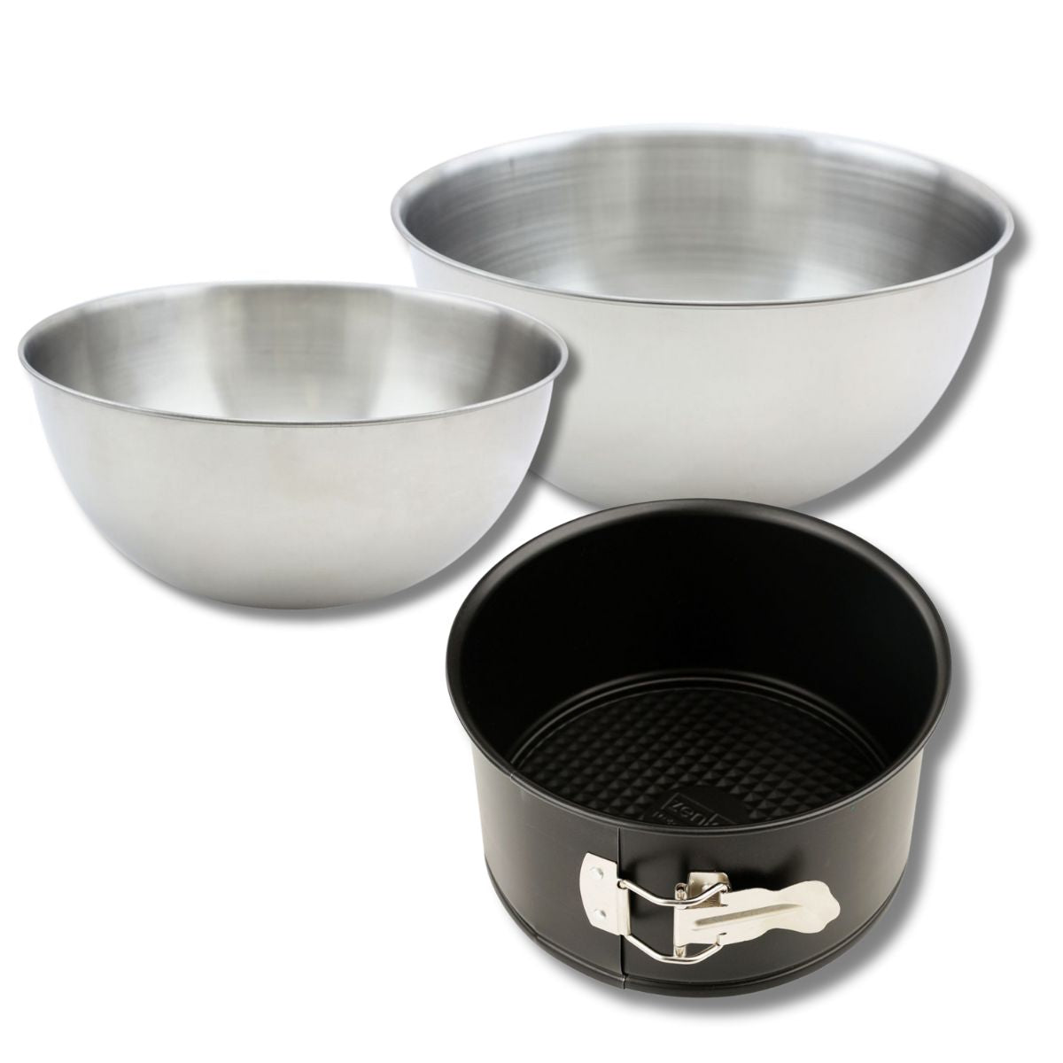 - 2 bols à mixer en inox robuste de 25 cm et 20,5 cm de diamètre, pour préparer vos pâtes à gâteaux
