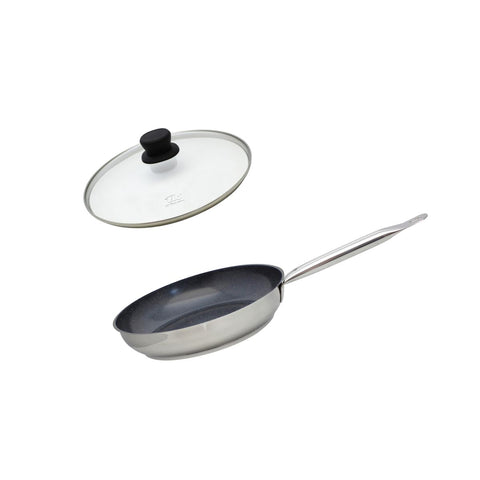 Cette poêle en inox 18/10 garantie 5 ans et son couvercle en verre et inox répondent aux nouvelles exigences de qualité en cuisine. De taille compacte à 24 cm, elle convient pour vos préparations destinées à une ou deux personnes.