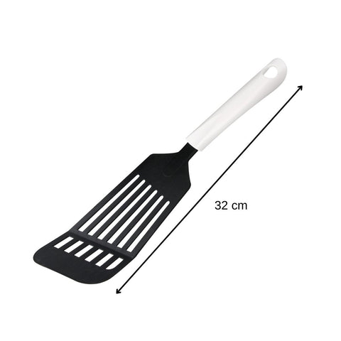 Une spatule de cuisine en nylon et plastique afin de ne pas endommager vos poêles, cette spatule vous permettra de retourner facilement retourner vos aliments.