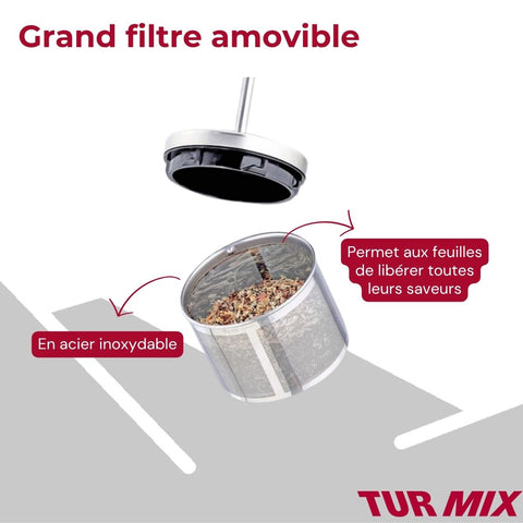 Avec son grand filtre amovible en acier inoxydable, elle permet aux feuilles de thé comme aux infusions de révéler leurs saveurs les plus subtiles. Sa fonction de maintien au chaud conserve votre thé ou votre tisane à température pendant 60 minutes.
