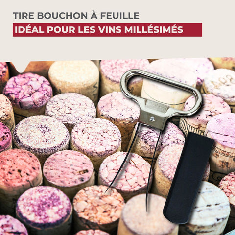 Le Tire-Bouchon bilame est un outil professionnel : il permet d’extraire les bouchons sans les abîmer, même les plus anciens et fragiles. Ce tire-bouchon à feuille ne perce pas les bouchons, ainsi ils ne s’effritent pas. Outil de préservation du vin, le bilame sert aussi à reboucher les bouteilles entamées.