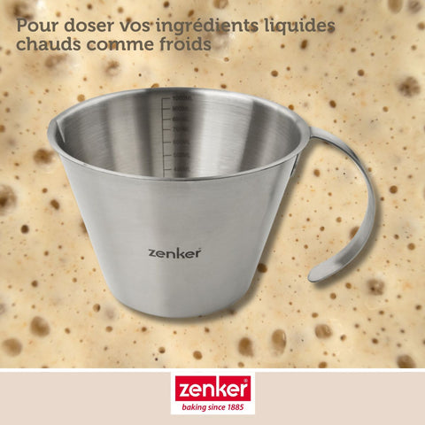 Zenker vous propose ce verre doseur gradué à l'intérieur en inox avec une capacité d'un litre. Ce verre mesureur est parfait si vous avez besoin de mesurer une quantité de liquide comme de l'eau, du lait, de l'huile...