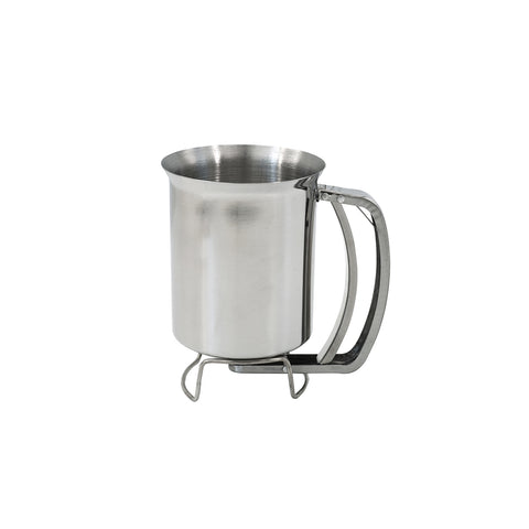 Cet ustensile de pâtisserie pour gâteaux est fabriqué entièrement en acier inoxydable, un matériau très hygiénique généralement utilisé par les chefs professionnels. Il s'agit d'un distributeur de pâte ou pancake maker ou encore verseur de pâte à gâteau ou autre.